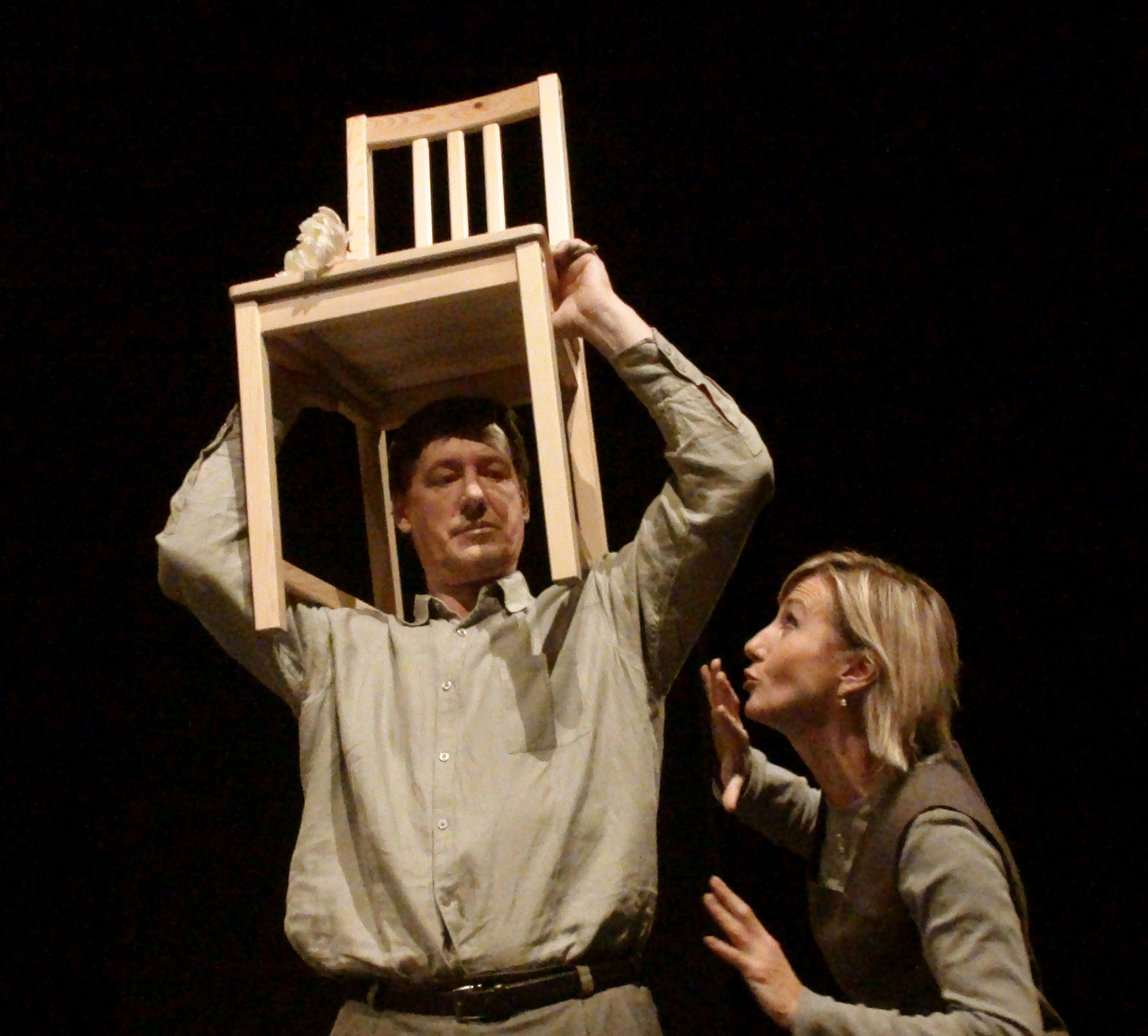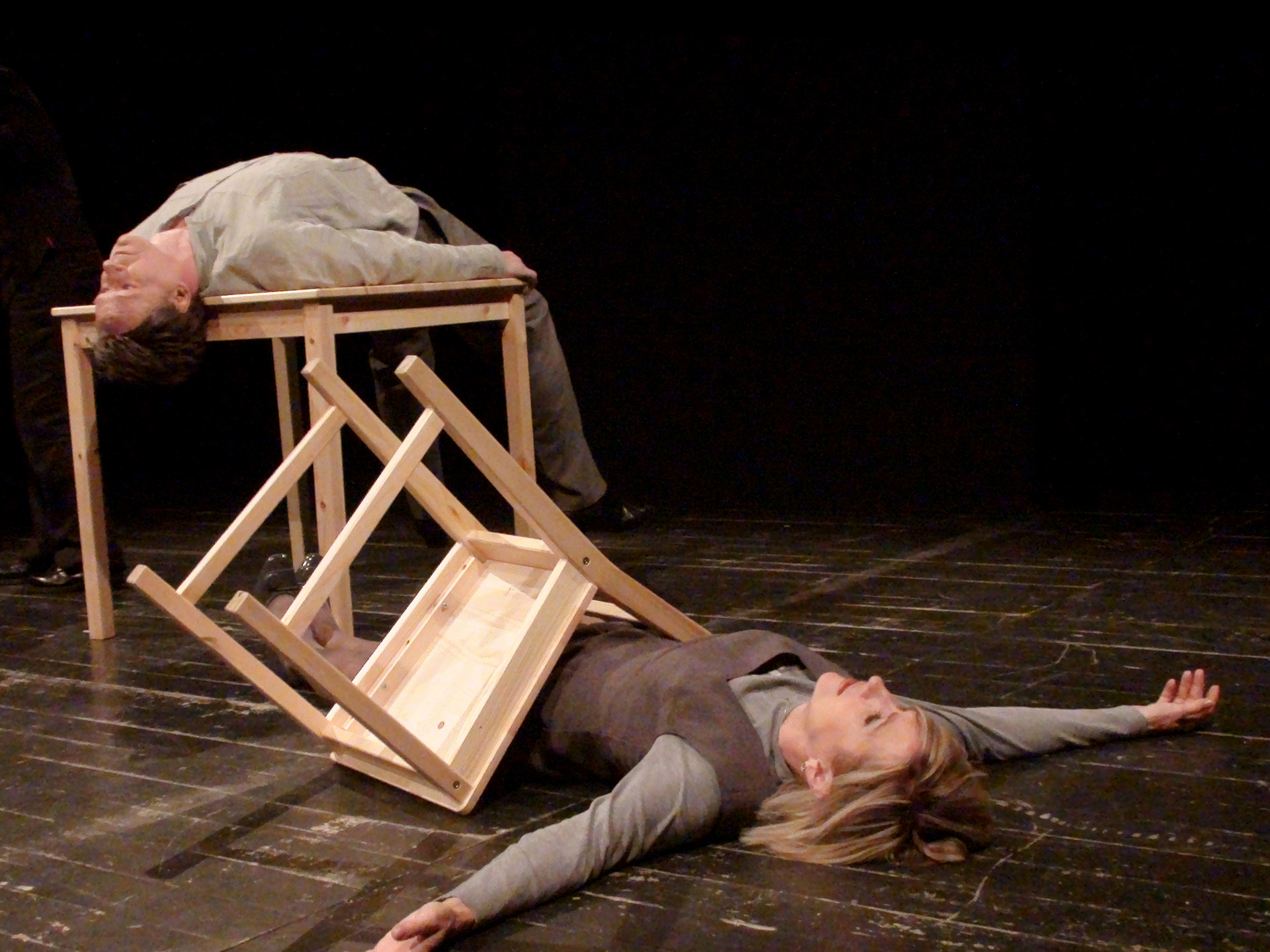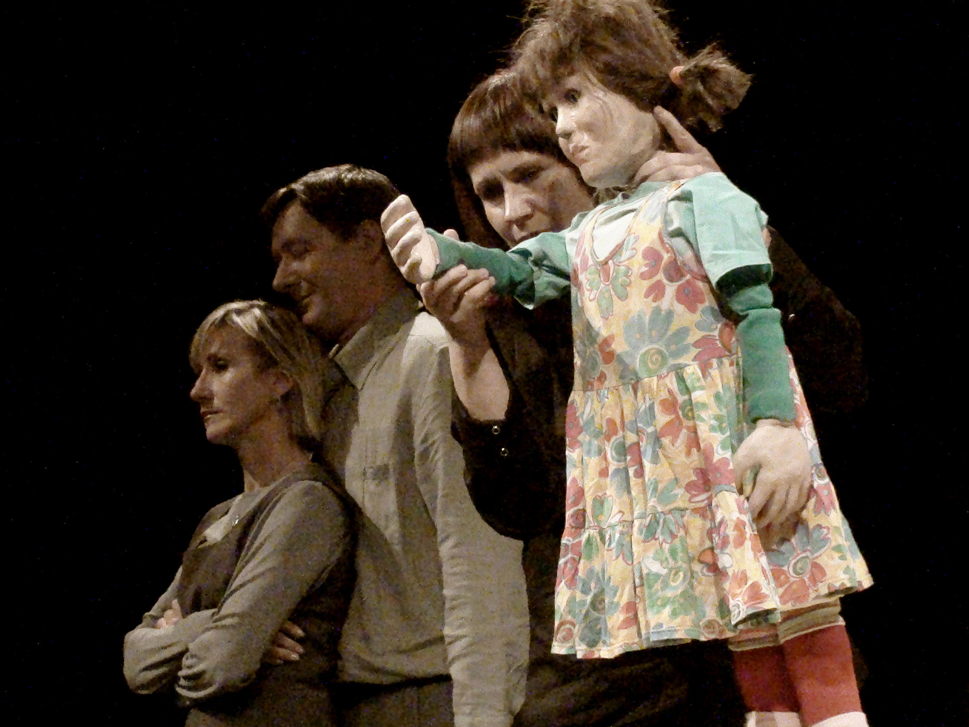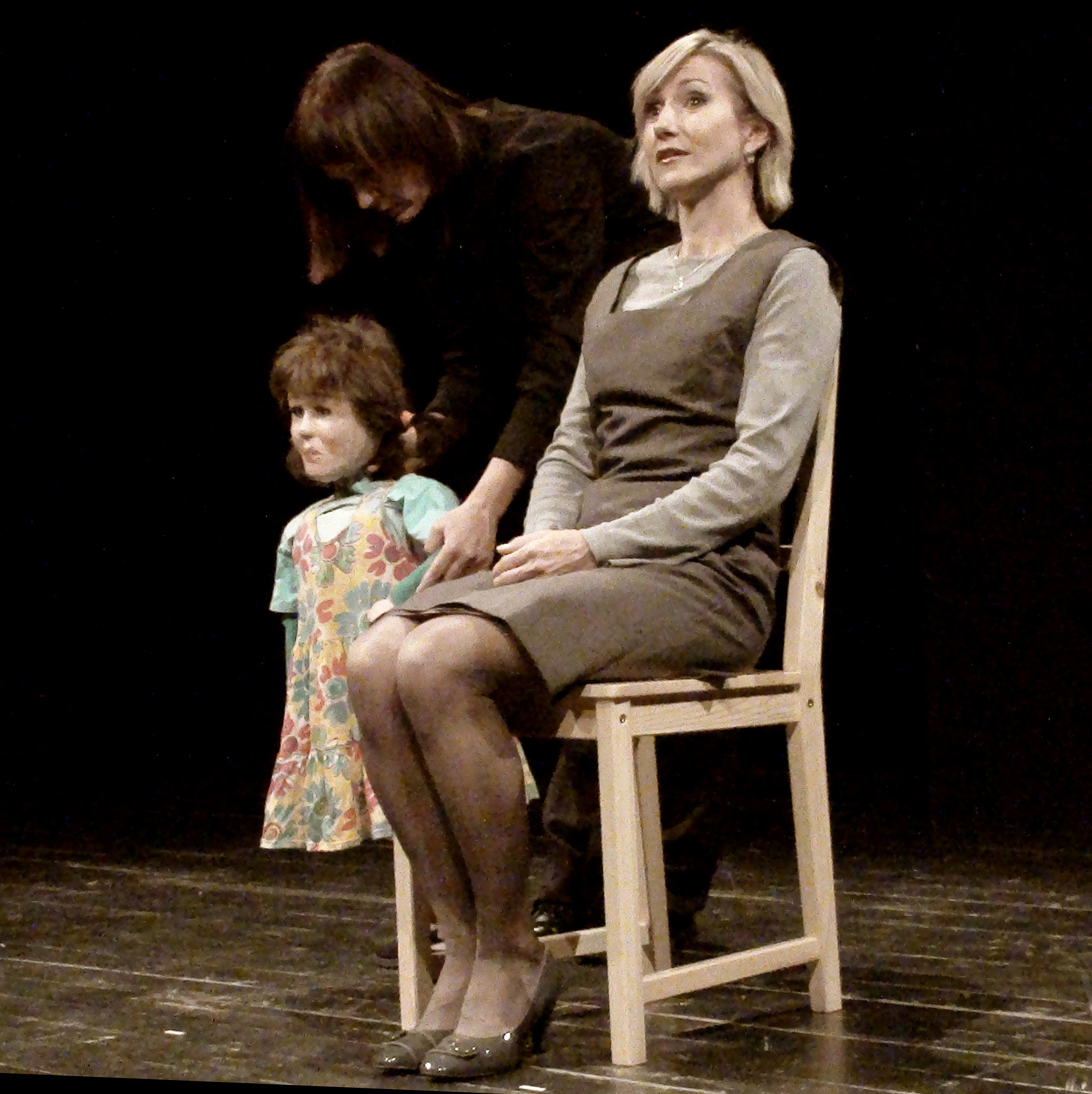 W spektaklu obserwujemy „obecność” trojga teoretycznie najbliższych sobie osób. Mijają się pozostając w osobnych „niekompatybilnych” światach. Tylko dziecko rozpaczliwie dobija się o swoje prawo do bycia dzieckiem. Dzieckiem swoich rodziców. Bezskutecznie.